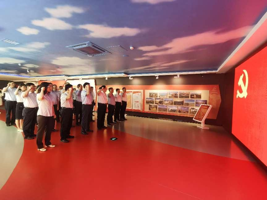 集團黨委理論學習中心組成員首先來到省委黨校黨性教育館,在講解員的引導講授下,認真接受現場教學,并先后參觀學習了“黨性修養立身之本”“理想信念精神之鈣”“紀律規矩行為底線”“作風形象人心向背”“不忘初心繼續前進”五個展廳。期間,與會同志仔細閱讀一份份翔實的文字檔案、端詳察看一幅幅珍貴的歷史圖片、認真傾聽一個個感人的紅色故事,并不時駐足觀看,詢問歷史細節,交流思想體會。隨后,在黃林沐同志領誓下,全體與會同志面對黨旗,舉起右拳,鄭重宣誓,錚錚誓言久久回蕩,進一步表達了集團黨委高舉理想之旗、筑牢信仰之基的堅定政治信念。