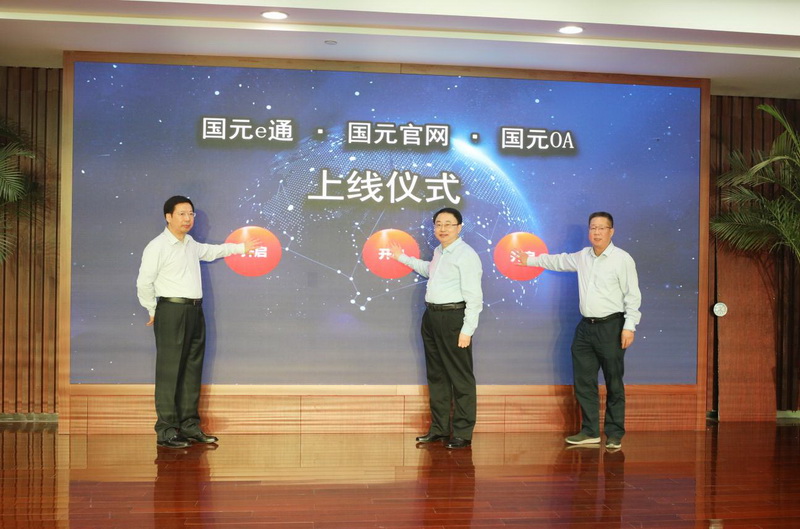 9月8日上午,國元金控集團舉行國元e通、國元官網(wǎng)、國元OA上線儀式。集團黨委書記、董事長方旭出席上線儀式,并與黨委副書記、總經(jīng)理吳天和黨委副書記姚立斌共同啟動上線按鈕,集團副總經(jīng)理魏李翔介紹了國元e通、國元官網(wǎng)、國元OA項目建設等情況。