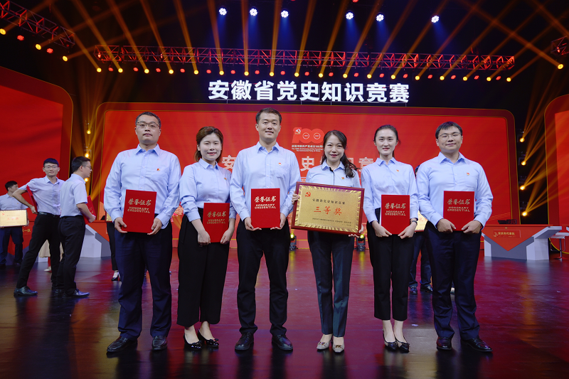 9月17日為慶祝中國共產黨成立100周年,持續深入推動黨史學習教育扎實開展,由安徽省委黨史學習教育領導小組辦公室、省委組織部、省委宣傳部聯合組織開展的“銘記光輝歷程 汲取前進力量”安徽省黨史知識競賽總決賽在合肥舉行,省委常委、省委宣傳部部長陶明倫出席并頒獎。由國元金控集團5名參賽選手組成的省屬企業代表二隊在預賽中從24只代表隊里脫穎而出,成功晉級總決賽,成為全省“八強”之一,并在總決賽中奪得三等獎。