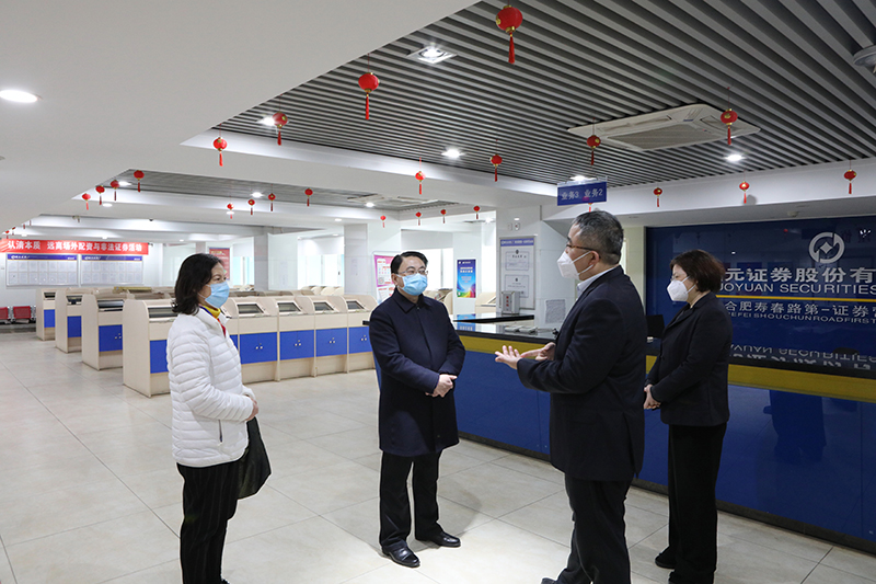 上午11時許,方旭又先后趕到集團旗下國元證券壽春路第一證券營業部、國元保險安徽分公司合肥中支公司、國元信托財富管理中心,現場暗訪外來人員體溫檢測、相關業務辦理等情況,詳細詢問了解工作人員防護、防疫物資儲備以及年度經營工作目標分解等情況。他對集團廣大干部員工疫情期間堅守一線崗位、創新服務模式、推進經營發展等表示贊許,同時指出要切實加強各項防疫措施的落實,有序推進各項經營發展,努力做到疫情防控與經營發展兩手抓兩促進。