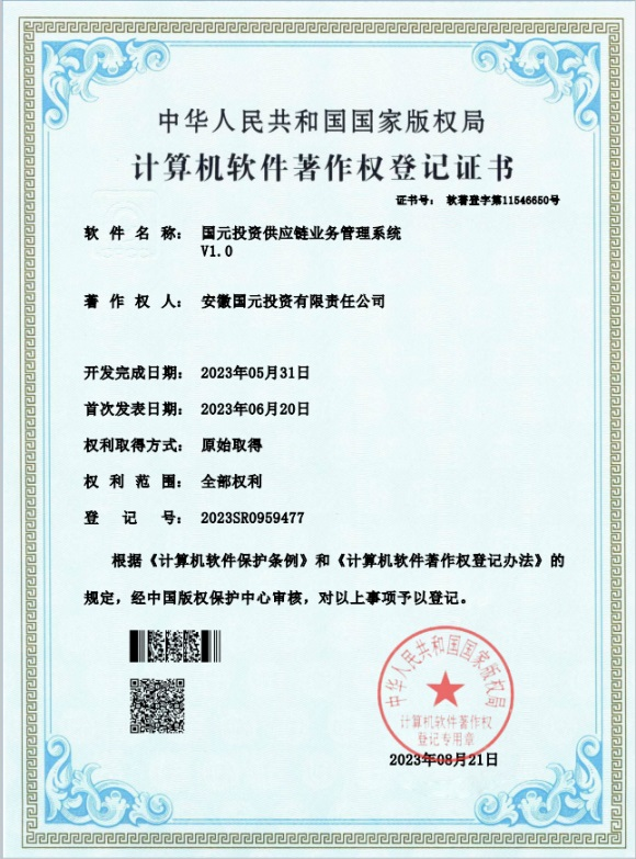 近日,公司成功獲得了國家版權局頒發的供應鏈業務管理系統、考核管理系統和工資單發放系統等三項計算機軟件著作權證書。