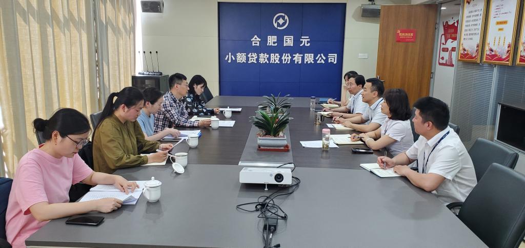 為深入學習貫徹習近平新時代中國特色社會主義思想和全面貫徹黨中央、省委大興調查研究的決策部署,開展大走訪大破題促提升行動,推動主題教育走深走實,2023年5月15日,合肥市經開區財政局副局長閆之文一行赴安徽國元投資有限責任公司(以下簡稱“國元投資”)下屬子公司合肥國元小額貸款股份有限公司(以下簡稱“合肥國元貸款”)開展調研及檢查工作。