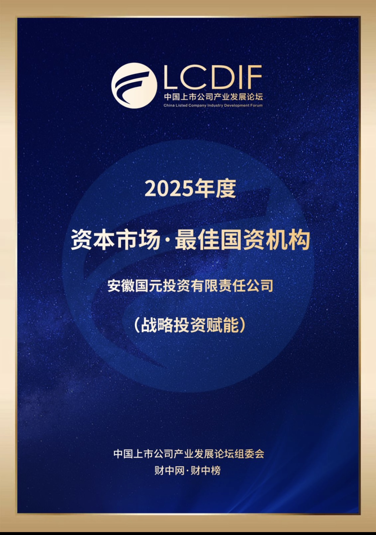 國元投資榮膺第三屆中國上市公司產業發展論壇“最佳國資機構”獎項
