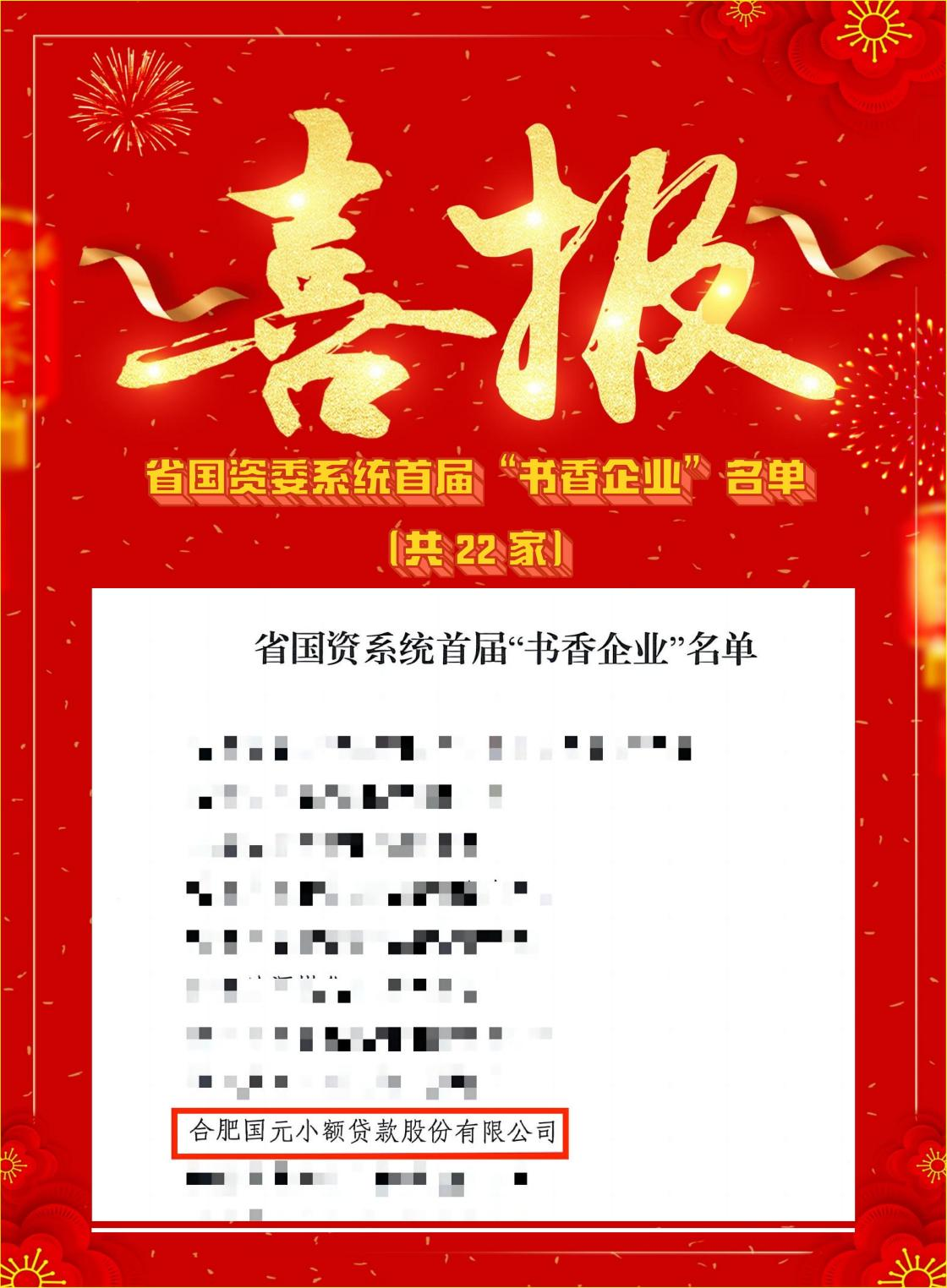 公司所屬合肥國元小貸獲省國資系統首屆“書香企業”
