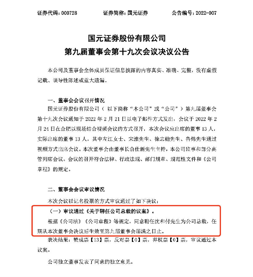 與此同時,國元證券公告了原總裁陳新、副總裁于強的辭任。據(jù)公告,國元證券原董事、總裁陳新因個人原因辭去在公司董事會、管理層擔(dān)任的全部職務(wù)。對其任職期間表現(xiàn),公司董事會予以高度贊賞和衷心感謝。