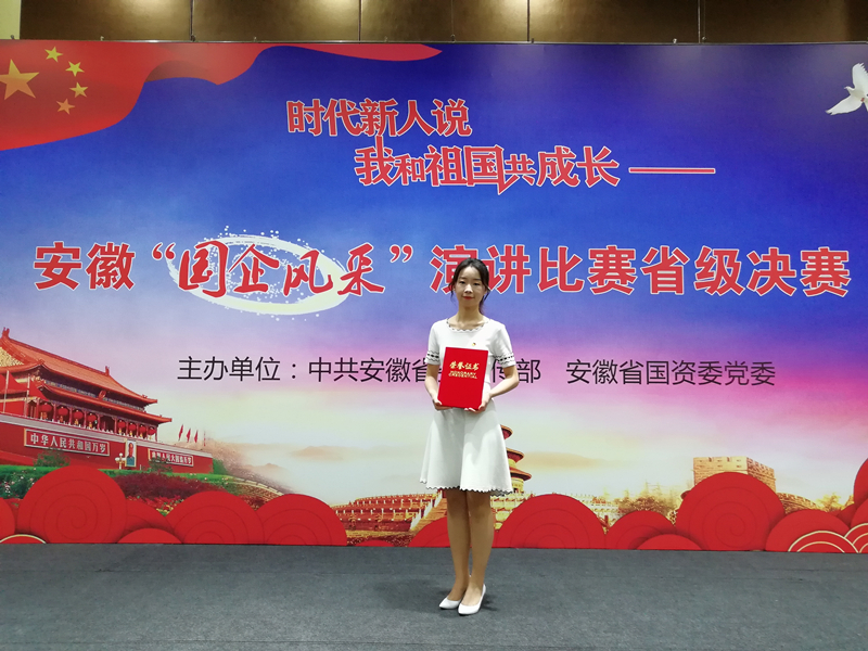 8月1日,省委宣傳部、省國(guó)資委黨委組織的“時(shí)代新人說(shuō)——我和祖國(guó)共成長(zhǎng)”——安徽“國(guó)企風(fēng)采”演講比賽省級(jí)決賽在省國(guó)資委4樓會(huì)議室隆重舉行。此次比賽共有來(lái)自省屬企業(yè)的23名選手參賽,比賽設(shè)一等獎(jiǎng)1名,二等獎(jiǎng)2名,三等獎(jiǎng)3名,優(yōu)秀獎(jiǎng)若干。我司選手黃潔燕在本次比賽中發(fā)揮出色,喜獲二等獎(jiǎng)。