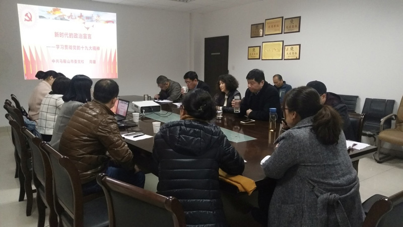 馬鞍山黨支部積極響應(yīng)公司黨委號(hào)召,于2017年11月28日組織召開(kāi)了深入學(xué)習(xí)領(lǐng)會(huì)黨的十九大精神宣講報(bào)告會(huì),邀請(qǐng)馬鞍山市委黨校周朋老師前來(lái)對(duì)支部全體黨員、積極分子、發(fā)展對(duì)象及馬鞍山各子公司領(lǐng)導(dǎo)班子成員進(jìn)行了一次十九大專題黨課教育。