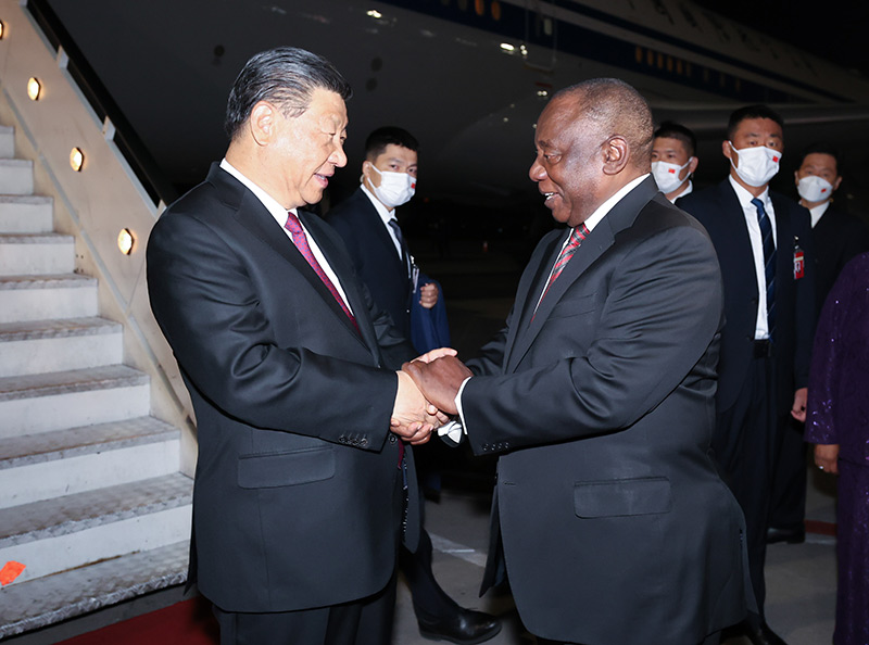 拉馬福薩熱烈歡迎習(xí)近平主席對(duì)南非進(jìn)行國(guó)事訪問(wèn)。習(xí)近平表示,我很高興再次到訪南非,期待同你就深化中南關(guān)系及共同關(guān)心的問(wèn)題深入交換意見(jiàn)。