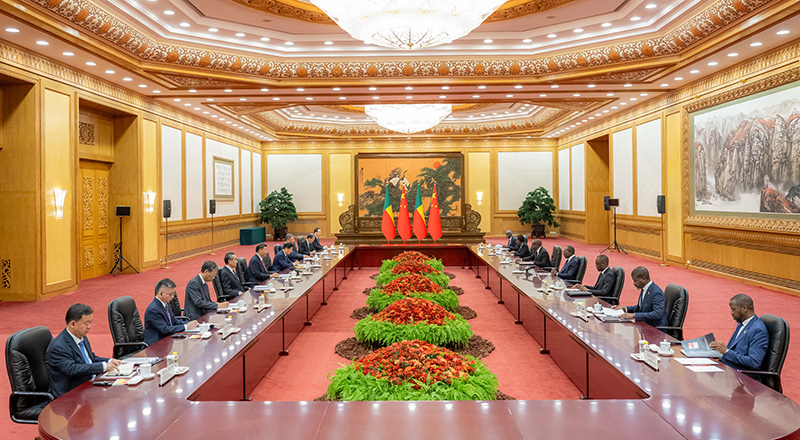 9月1日下午,國家主席習近平在北京人民大會堂同來華進行國事訪問的貝寧總統塔隆舉行會談。新華社記者 翟健嵐 攝