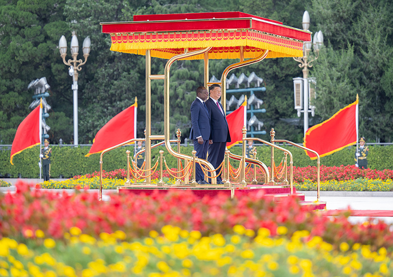 9月1日下午,國家主席習近平在北京人民大會堂同來華進行國事訪問的貝寧總統塔隆舉行會談。這是會談前,習近平在人民大會堂東門外廣場為塔隆舉行歡迎儀式。新華社記者 翟健嵐 攝