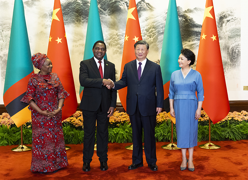 習近平指出,當前,發展中國家群體性崛起,國際影響力不斷增強,已經成為不可逆轉的時代潮流。我們要加強團結協作,踐行真正的多邊主義,堅定維護國際公平正義,努力提升發展中國家話語權,維護兩國和廣大發展中國家共同利益。中非合作已經成為南南合作和國際對非合作的引領者。真誠平等、互利共贏、捍衛正義、開放包容這些中非友好的主線和底色從未改變。中國堅定支持非洲國家走獨立自主的發展道路,堅定支持非洲國家成為世界政治、經濟、文明發展的重要一極。中方愿同包括贊比亞在內的非洲國家一道,落實好“支持非洲工業化倡議”等中非領導人對話會成果,加強戰略對接,深化各領域合作,支持非洲國家不斷提升自主發展能力,實現經濟復蘇和可持續發展,攜手構建新時代中非命運共同體。